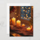 Cette carte postale crée une image chaleureuse avec une vue nocturne de Noël à l'extérieur de la fenêtre et des bougies magnifiquement éclairées. Exprimez vos sentiments avec une carte postale sentimentale.