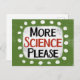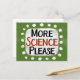 "More Science Please" est un joli design de texte en vert avec du texte en noir et rouge, avec une forme d'accent blanc et des points blancs à texture blanche.