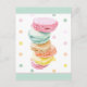Illustration d'une tour délicatement équilibrée de macarons rose, vert, orange, marron et jaune. Une spécialité française et une carte ou un cadeau délicieux pour un ami spécial ou qui aime les sucreries.