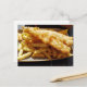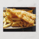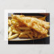 Photo de fond de Fish and Chips imprimée sur une carte postale.