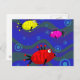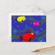 Drôle poisson caricature nageant le long d'un arrière - plan bleu ondulé et bulles rétro