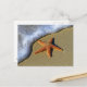 Photographie de plage frappante, une étoile de mer orange vif au bord de l'eau sur le point d'être recouverte d'une douce vague.