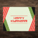 Célébrez Kwanzaa avec une touche moderne en utilisant cette carte de voeux élégante. Dotée de rayures rouges audacieuses et de pois verts contre un arrière - plan clair, cette carte combine les couleurs traditionnelles de Kwanzaa avec un design frais et géométrique. Le message "Happy Kwanzaa !" est affiché en rouge, ce qui en fait un choix parfait pour envoyer des voeux chaleureux à des proches pendant les vacances. Diffusez la joie de Kwanzaa avec une carte qui reflète l'esprit festif d'unité et de famille.