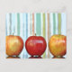 Les pommes de gala sont le point d'arrêt du spectacle sur cette carte postale. L'arrière - plan rayé rend cette photo décontractée et amusante et plus qu'une simple vie tranquille. Voici une photo originale de Kristin Corlett, vendue par le magasin de cartes KNS.