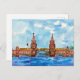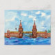 une aquarelle traditionnelle illustrant le célèbre pont Oberbaum ou Oberbaumbrücke à Berlin, en Allemagne, avec un train traversant le pont à travers la rivière.