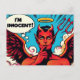 L'IA a généré l'art d'un diable avec des ailes d'anges dans un style de bande dessinée qui dit que je suis Innocent avec un léger pépin sur le texte