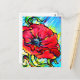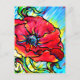 pavot rouge avec feuilles verts en jaune et arrière - plan turquoise, acrylique sur toile de l'artiste Nada Meeks
