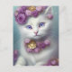 Carte Postale Portrait de chat blanc floral