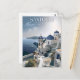 Experience the allure of Santorini through the lens of our captivating postcard. The iconic blue-domed churches of Oia stand proudly against the Aegean Sea, creating a harmonious blend of traditional Cycladic architecture and breathtaking natural beauty. The sun gracefully dips below the horizon, casting a warm glow over the white-washed buildings that cling to the cliffs. The winding cobblestone streets invite you to explore the charm of this enchanting island, while bougainvillea flowers add vibrant splashes of color to the picturesque scene. The azure waters below mirror the cloudless sky, inviting you to dream and unwind. Send a piece of Santorini's romance and serenity to loved ones or keep it as a timeless memento of this Greek paradise