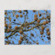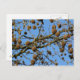 Brown gousses de graines floues et pointues, suspendues des branches d'un platane londonien, vues contre un ciel bleu vif.