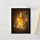 Carte postale de Noël amusante. Photographie d'un poulet en caoutchouc avec des guirlandes de Noël emmêlées.
