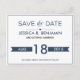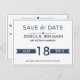 Carte postale pour annoncer la date de mariage avec un ruban marine