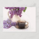 De belles fleurs lilas et une tasse de café ou de thé pour égayer votre journée! Photo de Larisa Koshkina