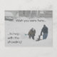 Carte postale avec des hommes qui déblayent de fortes chutes de neige et le message "Souhaitez-vous être ici" ..."pour aider à la déblaiement!" Le message secondaire inverse est : "À bientôt au printemps". Peut être customisé avec un message personnel. Super carte postale "Keep in touch".