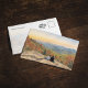 Cette carte postale présente un portrait en aquarelle d'un couple assis côte à côte en regardant un coucher de soleil sur le Rocher du Prophète.