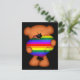 Carte postale mignonne d'un petit ours en peluche tenant un coeur géant de fierté arc-en-ciel