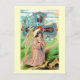 Peinture vintage en bleu rose et vert. avec un ange et une belle grande croix maltaise aux décorations ornées et aux fleurs bleues.