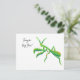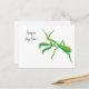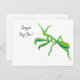 Cette carte postale présente une illustration peinte d'une mante en vert vif aux accents orange et est prête à être customisée de votre propre message sur le devant. Le verso de cette carte est vide pour que vous écriviez dans votre propre message.