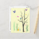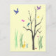 Cette carte postale crée une ambiance printanière colorée et capricieuse. Les oiseaux volent et sont perchés dans l'arbre. Les papillons flottent dans l'air chaud. Un canard barbote dans l'herbe. Il y a même un minuscule escargot au sol.