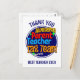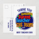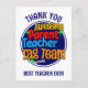 Carte postale amusante et colorée pour les parents d'élèves de l'équipe pédagogique pour montrer leur appréciation pour les enseignants de maternelle, d'école primaire, etc. qui sont sur le point de partir en vacances de mi-trimestre. Le texte indique ÉQUIPE TAG PARENT ENSEIGNANT INCROYABLE et C'EST À VOUS ! dans une typographie colorée et vive. Au verso, vous pouvez personnaliser votre message de remerciement. Cette carte postale de remerciement aux enseignants serait une bonne idée pour montrer le soutien parental en fin de trimestre.