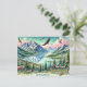 Voici une carte postale de voyage de style aquarelle pour Happy Jour des terres, avec une chaîne de montagnes majestueuse avec des sommets enneigés, des forêts de pins denses et un lac tranquille reflétant le paysage. 🌿 🌎 ✨ La scène comprend des aigles qui grimpent, des wapitis qui broutent et des renards curieux, créant une atmosphère majestueuse inspirée de la nature. Le texte "Protégez notre planète !" est en script élégant et fluide avec une texture aquarelle,