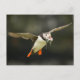 Carte animale montrant un macareux de l'Atlantique volant sur l'île de skomer (Pays de Galles) avec des anguilles de sable en bec pour nourrir les poussins. Le macareux de l'Atlantique (Fratercula arctica), aussi connu sous le nom de macareux commun, est une espèce d'oiseau de mer de la famille des auques. C'est le seul macareux originaire de l'océan Atlantique. Le macareux de l'Atlantique a une couronne et un dos noirs, des taches gris pâle et des parties inférieures blanches. Ses larges pattes de bec et d'orange rouge et noir, marquées audacieusement, contrastent avec son plumage. Il mue en mer en hiver et certaines des caractéristiques faciales aux couleurs vives sont perdues. Les macareux de l'Atlantique se reproduisent en Islande, en Norvège, au Groenland, à Terre-Neuve et dans de nombreuses îles de l'Atlantique Nord, et jusqu'au sud, dans le Maine à l'ouest et dans les îles britanniques à l'est. Le macareux de l'Atlantique a une grande population et une grande variété. Il n'est pas considéré comme en voie de disparition, bien qu'il puisse y avoir des déclins locaux en nombre. Sur terre, il a la position droite typique d'un auk. En mer, ils nagent à la surface et se nourrissent principalement de petits poissons qu'ils attrapent en plongeant sous l'eau, en utilisant leurs ailes pour se propulser.