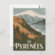 Une représentation à couper le souffle et nostalgique des Pyrénées, une chaîne de montagnes majestueuse qui forme la frontière naturelle entre la France et l'Espagne. Le design saisit les magnifiques paysages alpins, avec des sommets imposants, des vallées luxuriantes et des lacs tranquilles. Rendu dans un style vintage, l'oeuvre évoque la beauté sereine et l'esprit aventurier des Pyrénées, invitant les spectateurs à explorer ses paysages à couper le souffle et ses activités de plein air.