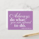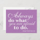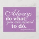 Citant Ralph Waldo Emerson "Faites toujours ce que vous avez peur de faire." Carte postale violette et blanche de gotdonna.
