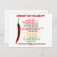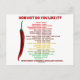 Aimez-vous les piments ? Aimez-vous le goût de la chaleur âcre que beaucoup d'entre eux portent ? Laissez briller votre côté gourmand chimique avec cette carte postale qui présente une variété de poivrons à l'échelle de Scoville selon leur unité de chaleur Scoville (SHU) respective. Posez-vous et posez-vous à d'autres cette question clé : "Qu'est-ce qui vous plaît ?" Carte postale humour végétal pour tous ceux qui aiment les poivrons chargés de capsaïcine.