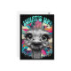 Un autruche aux traits exagérés est représenté contre un arrière - plan vibrant et coloré, avec l'expression "QUOI DE PLUS ?" en caractères gras au-dessus de la tête. L'oeuvre combine des éléments de style fantaisie et pop art, créant ainsi une exposition attrayante.