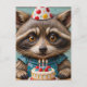 Carte Postale Raccoon adorable avec gâteau d'anniversaire