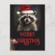 Raccoon sauvage merveille, rouge drôle étreinte de noël, animal de poubelle casquette, neige froide santa claus, flocon de neige heureux hiver, vacances Noël mignon Raccoon