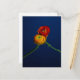 Carte postale photographique de 2 fleurs ranunculus enchevêtrées à un arrière - plan bleu profond