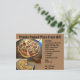 Il s'agit d'une carte de recettes pour une croûte à pizza très riche en protéines, sans gluten. C'est l'une des nombreuses recettes développées par K. Ivie pour le blog Stitching Rembris. L'avant de la carte montre des photos et des ingrédients tandis que l'arrière fournit les instructions. La recette est particulièrement bonne lorsqu'elle est faite avec de la sauce barbecue et du poulet grillé.