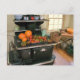 Cette carte postale est munie d'un vieux poêle à bois de Glenwood chargé d'une récolte estivale de courges et de tomates.