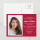 Carte postale de l'invitation à la fête de remise de diplômes de photo personnalisée en rouge et blanc