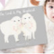 Christian Le Seigneur est Mon Pasteur Psaume 23 Carte postale Écriture Religieuse Citation Inspirationnelle. Famille Mignonne Moutons avec adorable agneau et coeurs roses sur arrière - plan gris