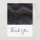 Carte de remerciement avec une belle image de pierre d'agate abstraite foncée. Les couleurs tourbillonnent en vagues. Les couleurs principales sont le noir, le gris-bleu avec un ruban doré faux qui traverse le design. Moderne et tendance.