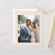 Carte de remerciement de mariage manuscrite beige, 1 photo. Minimaliste, moderne, magnifique.