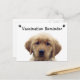 Cette carte postale "Vaccination Reminder" est parfaite pour rappeler aux clients de votre clinique les vaccins nécessaires dont leurs animaux de compagnie pourraient avoir besoin. Doté d'une photo chère d'un chiot Golden Retriever, cette carte de rappel est facilement personnalisable en remplissant le dos avec toutes les informations de votre client et de votre entreprise.