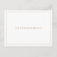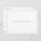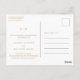 Carte postale simple de remise mariage avec un design élégant et intemporel avec votre monogramme à deux lettres en haut et vos détails entourés d'une mince bordure. Tout le texte est dans un ton doré, sur un arrière - plan blanc. La couleur de police peut être changée en n'importe quelle couleur que vous souhaitez en cliquant sur le bouton personnaliser ou en faisant une demande de commande personnalisée en m'envoyant un message. Un design propre et classique, parfait pour un couple qui veut une faire-part de style traditionnel avec une touche moderne. Ces cartes postales faire-part sont un moyen économique d'informer les clients que votre mariage a été reporté.
