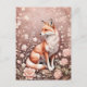 Carte Postale Renard Avec Flore Rose Rêvé