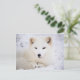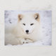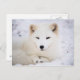 Photo d'un mignon renard blanc arctique reposant dans la neige. L'animal a de la fourrure blanche et des yeux bruns et vous regarde. Une vraie diva ! Timbre correspondant : com