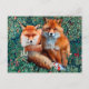 CARTE POSTALE RENARDS ROUX PARMI LA VERDURE, LE FEUILLAGE ET LES
