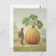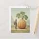 Une oeuvre d'art surréaliste et fantaisiste mettant en scène un jeune voyageur debout en émerveillement devant un énorme citrouille aux feuilles verts vibrants qui jaillissent de son sommet. Situé dans un paysage de campagne onirique, cette scène imaginative mêle imaginaire, nature et aventure. Parfait pour les amateurs de design unique, original et artistique, cette pièce fait une impression murale accrocheuse ou un cadeau créatif.