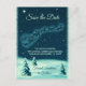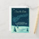 Une carte postale de sauvegarde de la fête de Noël avec une illustration vintage de Santa dans son traîneau tiré par ses rennes. De petites étoiles parsèment le ciel nocturne. Pins enneigés au sol. Rétro vintage.
