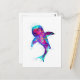 aquarelle traditionnelle d'un requin baleine géant très coloré aux couleurs surréalistes bleu et violet sur une carte postale