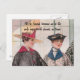 Cette carte postale présente une image vintage de deux femmes, avec le texte : "Nous sommes amis parce que nous sommes les seuls ivrognes respectables de la ville."