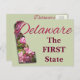 En 1953, la fleur de Pêche a été désignée comme la fleur officielle du Delaware. La Fleur de Pêche symbolise la longévité ou le désir de longue vie, la douceur de la vie et la vie aimante. À la fin des années 1800, les vergers de pêche du Delaware abritaient près d'un million d'arbres de pêche, produisant une récolte de milliers de dollars à l'époque. Bien que la plupart d'entre nous pensent à la Géorgie ou à la Caroline du Sud, à une époque, le Delaware était connu comme l'"Etat de Pêche". Malheureusement, à la fin du 19ème siècle, un fléau de la pêche a provoqué l'effondrement de l'industrie et, au début des années 1900, de nombreux paysans de la pêche ont fait faillite. En Caroline du Nord, nous ne sommes pas si loin au nord que le Delaware et nous avons une vingtaine de pêchers sur la propriété. Ils ont environ cinq ou six ans et nous n'avons pas encore récolté la première pêche. Dans notre coque, de fausses sources entraineraient un bourgeonnement précoce seulement pour qu'un gel subséquent tue tous les fruits en développement. Bien que j'aie encore de l'espoir, j'en suis venu à considérer les nôtres comme des arbres "ornementaux". Mais ce design n'est pas seulement un hommage aux pêches ou à leurs fleurs, il rend également hommage à notre PREMIER Etat, le Delaware. C'est assez distinctif, étant le premier état officiel des Etats-Unis. En termes de taille, le Delaware est le 49ème plus grand (sur 50) ou le 2ème plus petit Etat de l'union. A ses bords extérieurs, le Delaware fait 150 km de long sur 55 de large. Bien que géographiquement petit, le Delaware a donné à ce pays de nombreux cadeaux et de nombreuses personnes célèbres. Bien qu'il soit né en Pennsylvanie, l'ancien vice-président Joe Biden venait du Delaware. Le fils de Bob Marley, Stephen, est né à Wilmington, tout comme l'actrice Elisabeth Shue et l'actrice Valerie Bertinelli. Ce design enchanteur, célébrant le TRÈS PREMIER Etat officiel aux Etats-Unis, offre un aperçu de l'état du Delaware, rempli de leurs fleurs d'état, jolies fleurs de Pêche. Ces cartes postales délicieuses peuvent être achetées avant vos vacances afin que vous ne perdiez pas de temps à les chercher et que vous puissiez vous concentrer sur toute la beauté autour de vous. Paire avec les timbres-poste correspondants pour une présentation encore plus impressionnante.