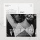 Express votre gratitude et merci à vos invités pour leur présence et de beaux cadeaux avec ce carte photo personnalisable. Ajoutez simplement votre photo de mariage préférée, changez les couleurs et écrivez votre propre message de remerciement.